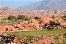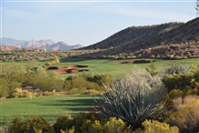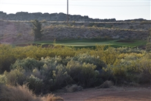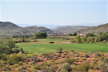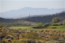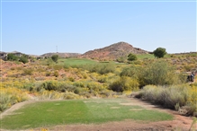 #17 is a long par 3 (188 yards) from an elevated tee, over the desert. There is some fairway short and left if you want to bail out and lay up.
