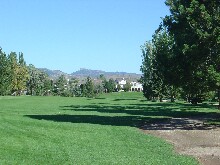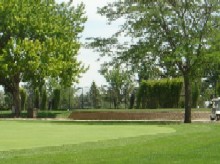 Hole 11 is a very challenging par 3.  It plays about 180 yards from the white tees, and there’s lots of trouble on both sides.  Down the left is a row of trees, backed by the irrigation ditch.  Down the right are scattered trees, which can interfere with your line to the green, as well as block out any high wedge shots with their canopy.  So straight is the name of the game.  The par golfers just hit their four and five irons straight to the green.  Bogey golfers can either hit a mid iron and let it be 30 yards short, and chip on with their second shots, or try a chipping motion with a fairway wood (again - hit it straight!).  The green has a lot of undulations, so be sure to read your putt from both sides of the hole, and pay close attention to your speed.  Bogey is a good score on this hole, so don’t get greedy.