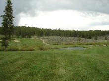 As with most mountain courses, since it's at a fairly high altitude, you tend to get an extra club's worth of carry compared to the Front Range, and maybe even two compared to sea level. Unlike nearby Grand Elk, this course tends to be carved out of the forest. Even on open holes along the valley floor, the woods are never far away. Carts here did not have GPS (as of summer 2004), but the course is pretty well marked for yardages.