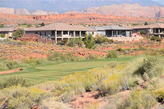 Background photo: Tee shot on #11 (par 5) at the Oasis Palmer course, Mesquite, NV